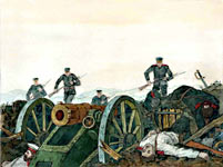 Миномет системы Гобято на позициях горы Высокая. Из серии «Оборона Порт-Артура» (б., акварель; 30х40см; 2003)