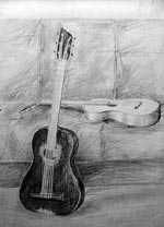 | Две гитары (б., карандаш, уголь; 2003) |
