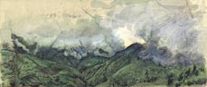 | Горные вершины (рисовая бум. на пластике, тушь, акрил; 21x45см; 2005) |