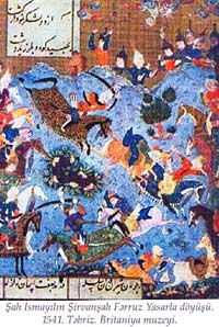 К 16 в. тебризская школа миниатюры пришла очищенной от монгольского влияния и от китайского искусства только кудрявые облачки «Чи» и фантастические существа (драконы, фениксы) еще остались как изобразительные элементы в миниатюре Тебриза (хотя в иконографии древних тюрков они часто изображались).