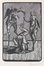 | Герман Паштов. Снегири. Обрезная ксилография. |