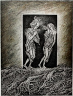 Адам и Ева со змеем (офорт; 14х16 см; 2007г.) |
