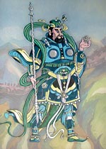 Китайский воин в зеленом (роспись по ткани, акрил; 2004) Японка в кимоно (роспись по ткани, акрил; 2004) Китайский воин в красном (роспись по ткани, акрил; 2004)